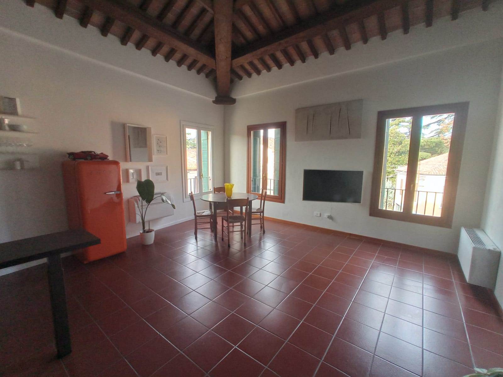 Moderno monolocale con ingresso, angolo cottura - soggiorno, soppalco con letto, bagno finestrato. Arredato ad esclusione del divano, lavatrice.